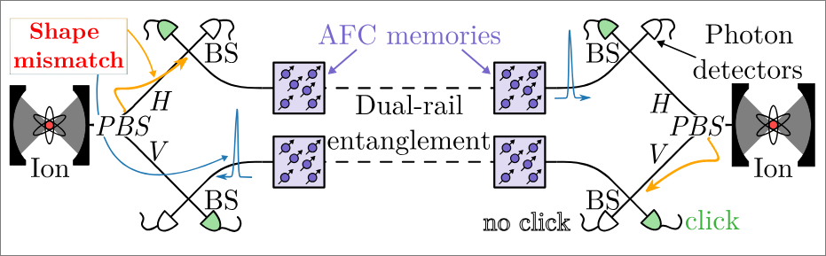 What could a quantum repeater look like? In a proposal from 2009, we proposed an architecture in which entanglement is generated remotely between nodes made with trapped ions and extended to long distances by means of deterministic operations on the ion internal states. We proposed to embed the ions in high-finess cavities to produce photonic entanglement with high efficiencies and frequency conversions was envisioned to bring the photon wavelength to the telecom band. A team from Innsbruck around B. Lanyon managed to implement a trapped ion node with all the properties envisioned almost 15 years ago. This experimental tour de force has been published in Physical Review Letters, received an Editor’s Suggestion and was featured in Physics and in Physics World.